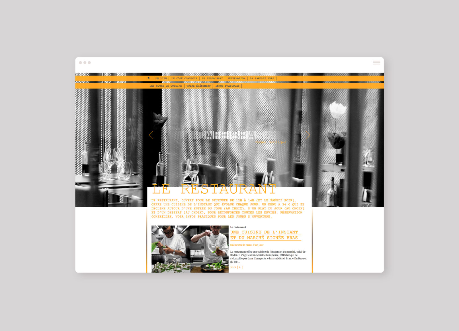 Proposer une approche éditoriale plus vaste qu’un simple site de restaurant pour raconter l’univers de la famille Bras, le double-concept du restaurant et la gestation du projet.